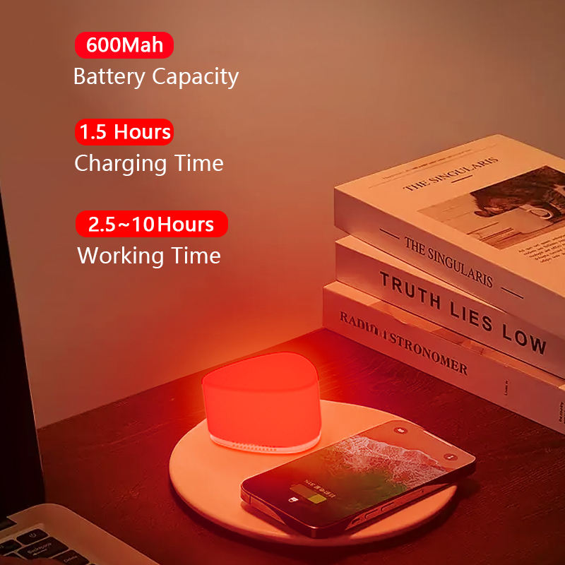 Lampe de nuit moderne à LED rouge 620/660/670nm 1W 600mAh ABS rechargeable et à intensité variable pour chambre d'enfant et bébé