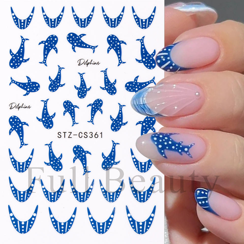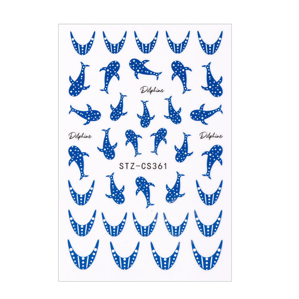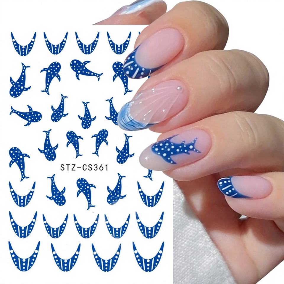 63 styles d'autocollants pour ongles 3D, motif baleine japonaise bleu marine, dessin animé, pois ludiques, animaux marins, tendance, pour nail art