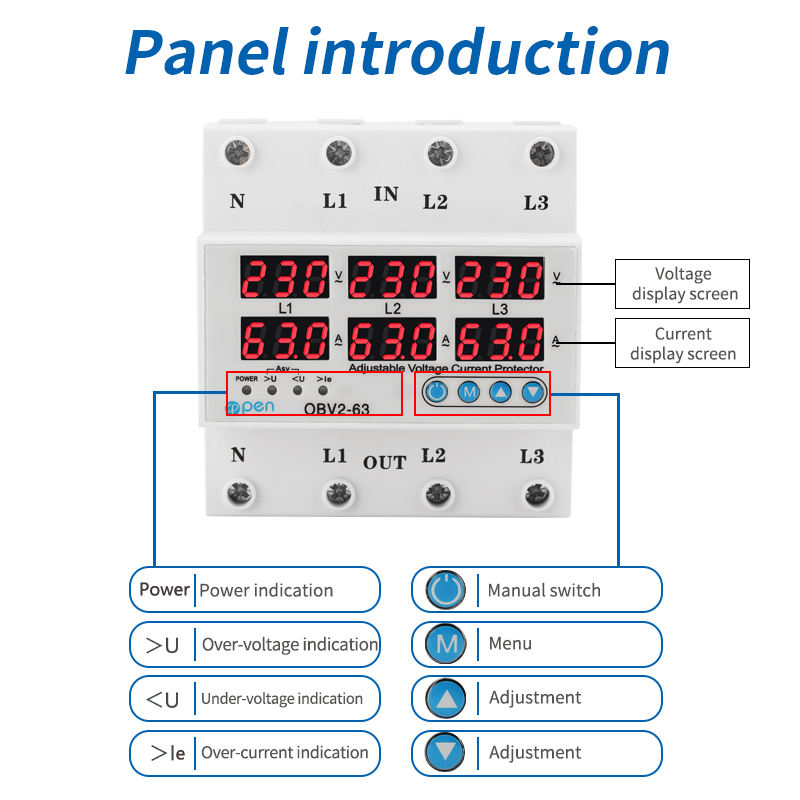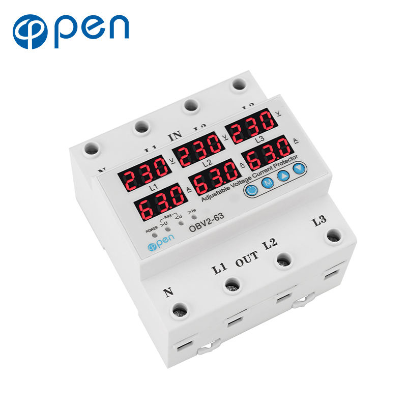 Protecteur de relais de courant de tension triphasé 63A 100A 63A 60A 220V 3P limiteur de courant de relais de sous-tension réglable protéger