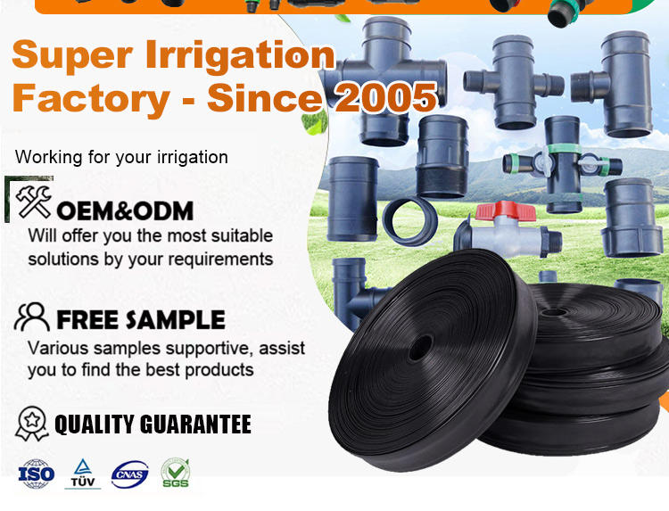 Tuyau d'arrosage plat en PE de 63 mm pour systèmes d'irrigation agricoles et de jardin, tube micro-pulvérisateur avec options de longueur de rouleau de 50 m/100 m/200 m