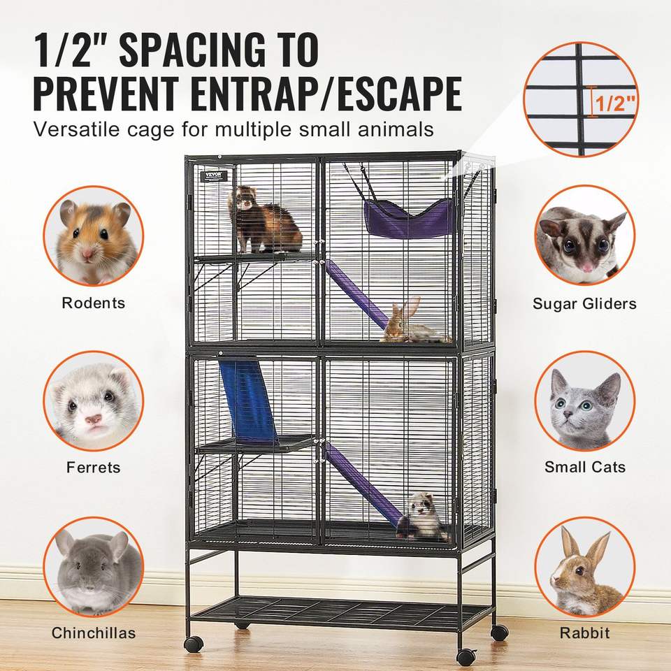 Cage de furet roulante en métal à 4 niveaux de 64.6 pouces avec plateau et 3 rampes Cage pour petits animaux de compagnie