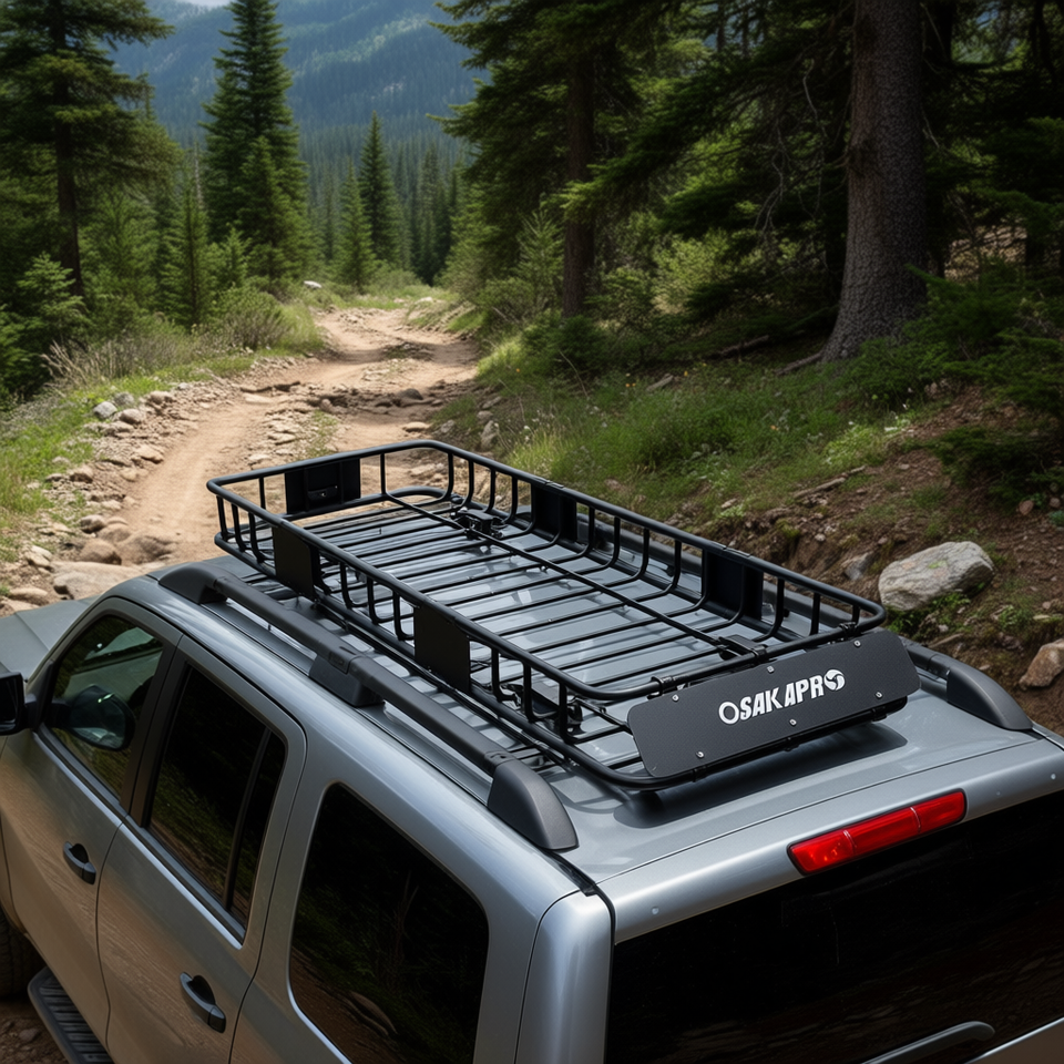 OSAKAPRO Panier de toit en acier de 64 pouces pour transport de marchandises, support de fixation pour barres de toit