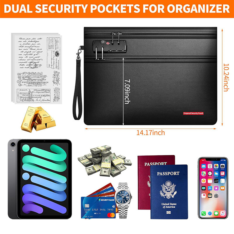 6400 ℉ Sac à argent ignifuge avec serrure, compartiments à double fermeture éclair, sac à documents ignifuge pour papiers importants, objets de valeur