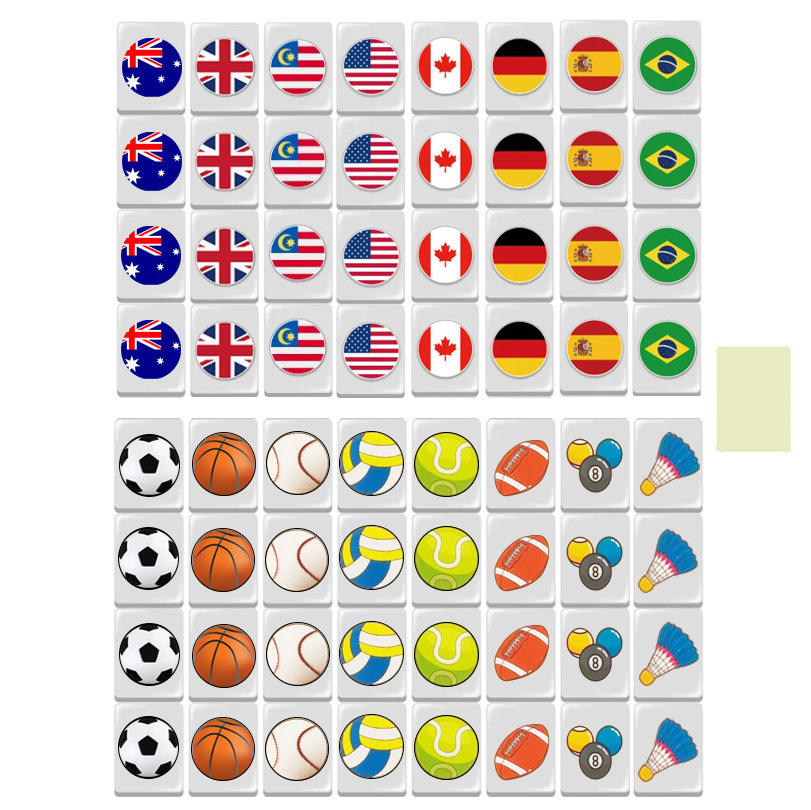 Jeu de société Mahjong de 64 pièces, thème Évasion en bord de mer, avec blocs de construction, motifs drapeaux nationaux et billes, tuiles de Mahjong américaines pour jeu de fête