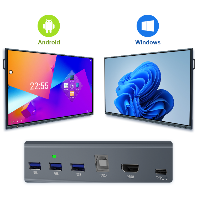 Tableau blanc interactif à écran tactile de 65/75/86 pouces, 4K, avec fonction de création de quiz alimentée par l'IA, système tactile à 40 points, double système DDP