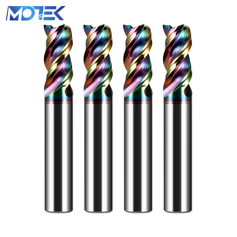 Fraise à trois dents en acier allié pour aluminium, 65 degrés, haute brillance, pour centre d'usinage CNC, MOTEK HRC65, 3 cannelures, plate, haute vitesse