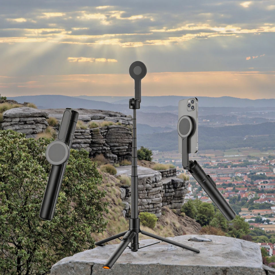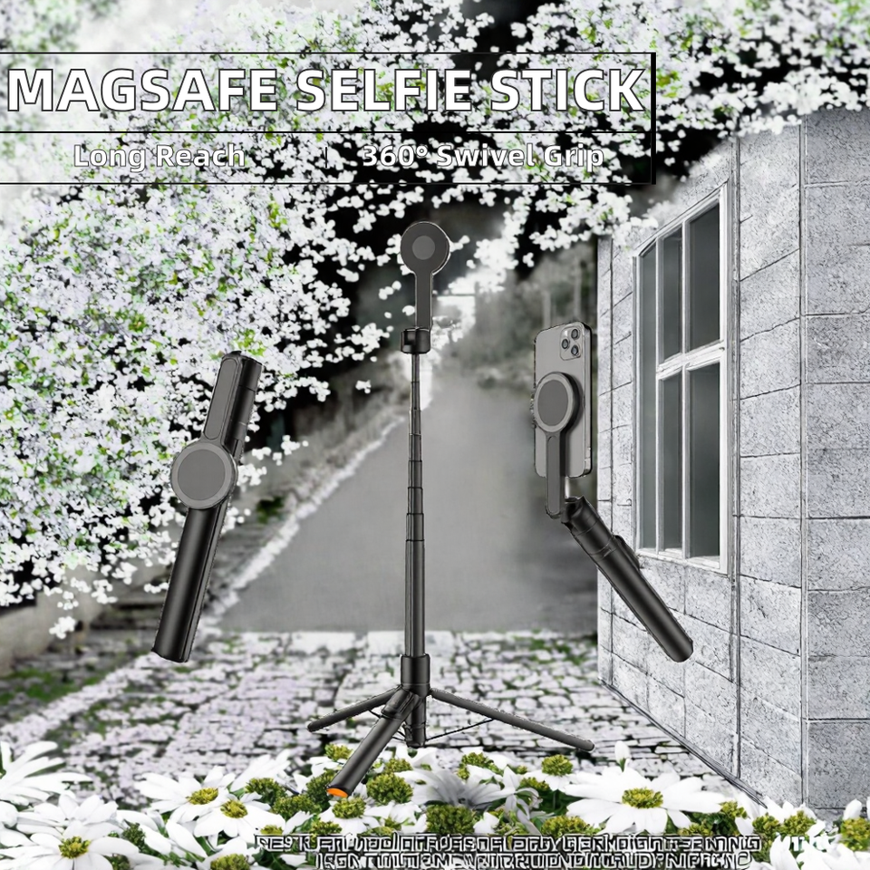 Bâton de selfie en aluminium extensible de 65 pouces pour MagSafe iPhone Rotatif à 360 ° avec fonction pliable à distance sans fil