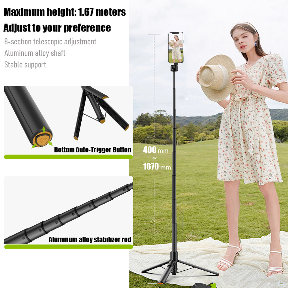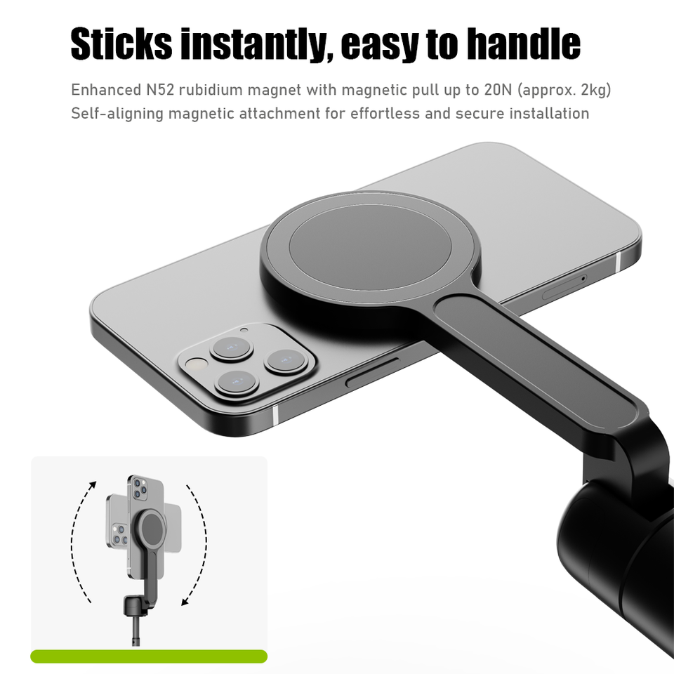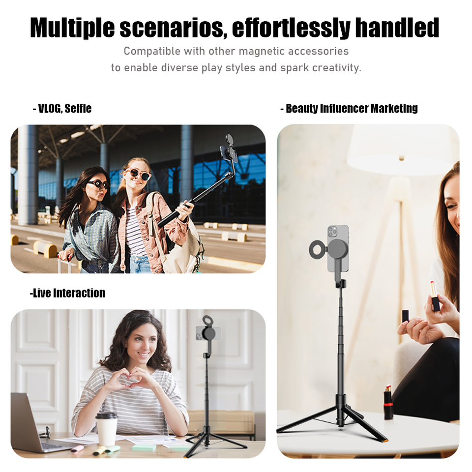 Bâton de selfie magnétique extensible de 65 pouces pour MagSafe iPhone Support en aluminium rotatif à 360 ° avec télécommande sans fil