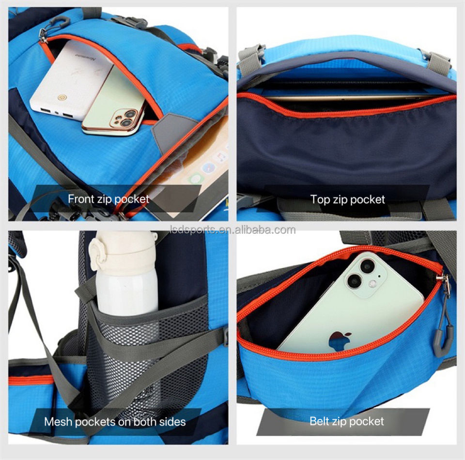 Sac à dos de randonnée de 65 litres Sac à dos d'alpinisme léger de grande capacité Sac à dos de sport avec logo personnalisé et compartiment à chaussures