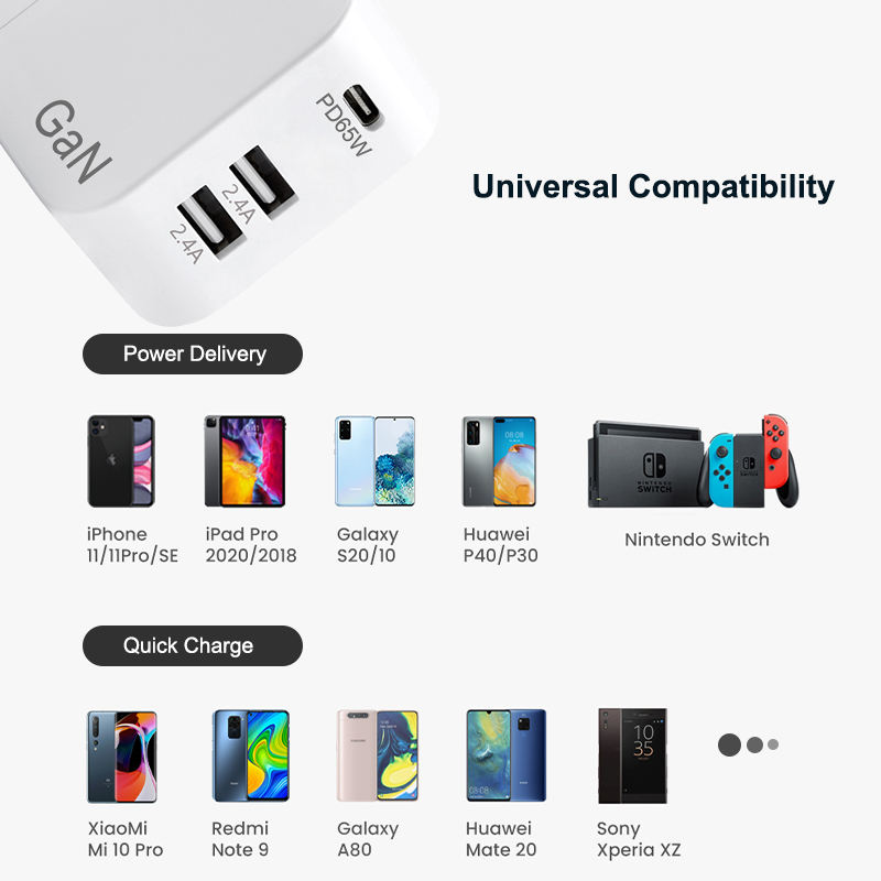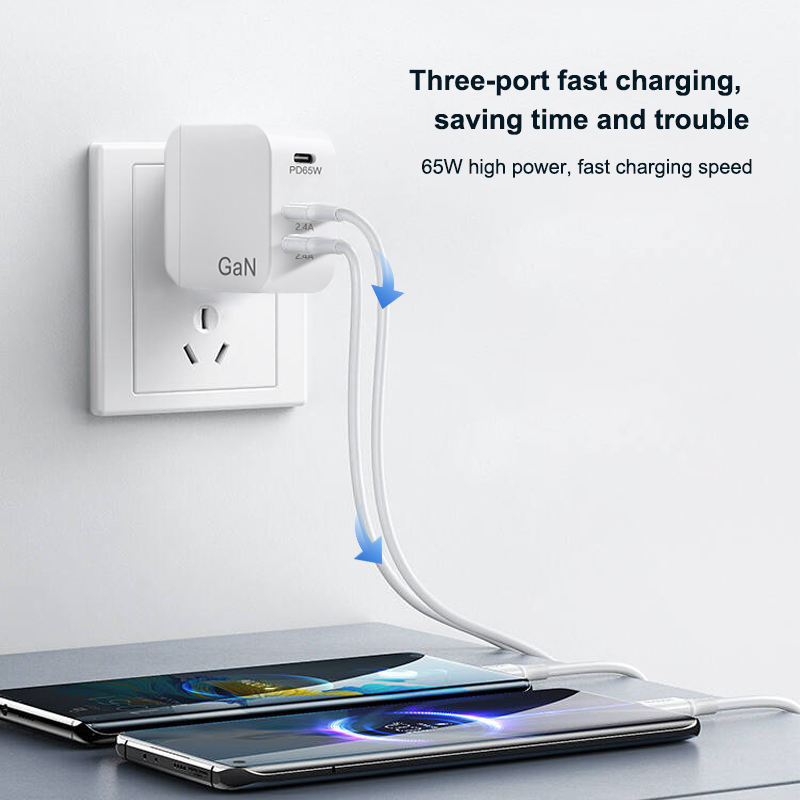 65 W GaN Chargeur Charge Rapide 3 Ports Type C PD USB Chargeur avec QC 4.0 3.0 Chargeur Rapide pour iPhone 12 Pro IPad