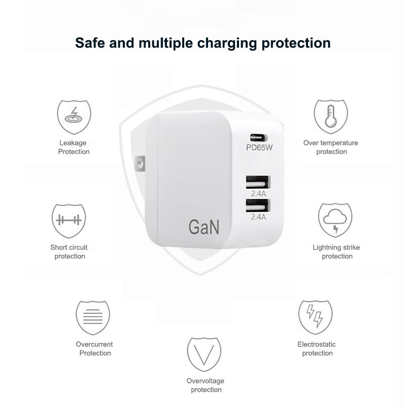 65 W GaN Chargeur Charge Rapide 3 Ports Type C PD USB Chargeur avec QC 4.0 3.0 Chargeur Rapide pour iPhone 12 Pro IPad