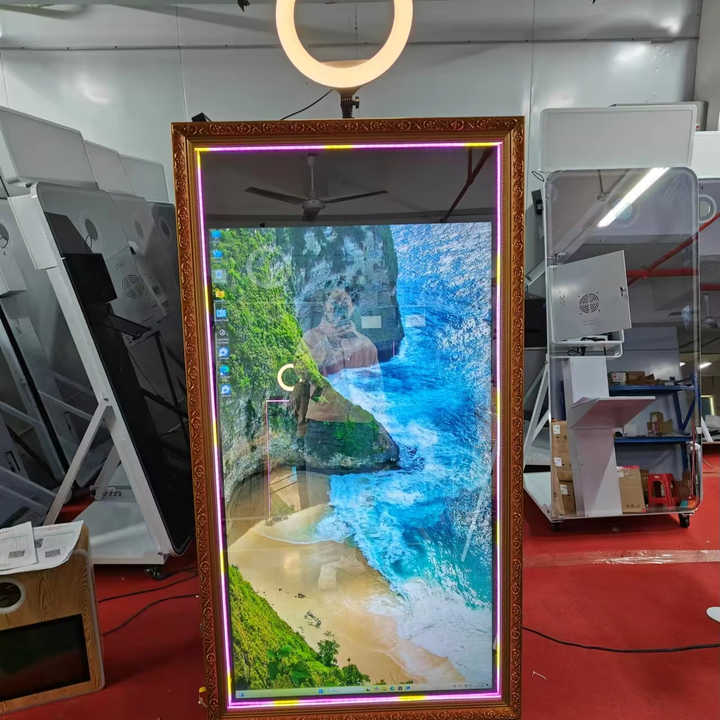 Photomaton miroir magique de 65 pouces : activité interactive, enregistrement, selfie en un clic pour capturer les moments forts et l'ambiance.