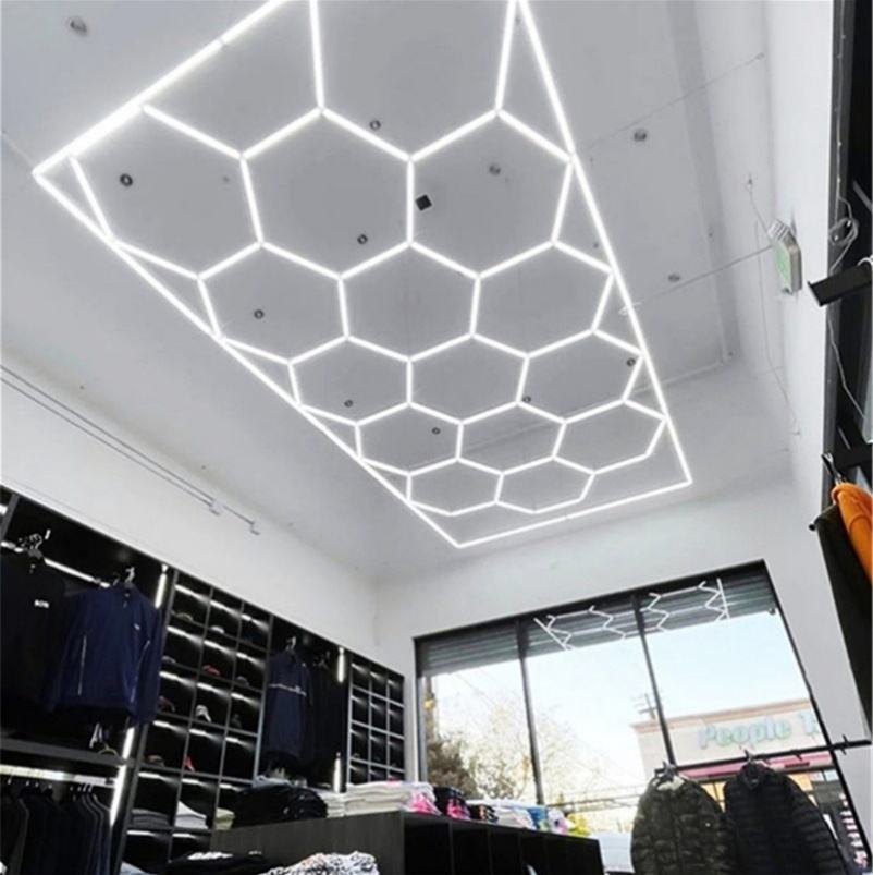 Plafonnier LED Alvéolaire Hexagonal en Aluminium 6500K 2.4*4.8m à Haute Luminosité, Lumière de Travail en Nids d'Abeille pour Garage