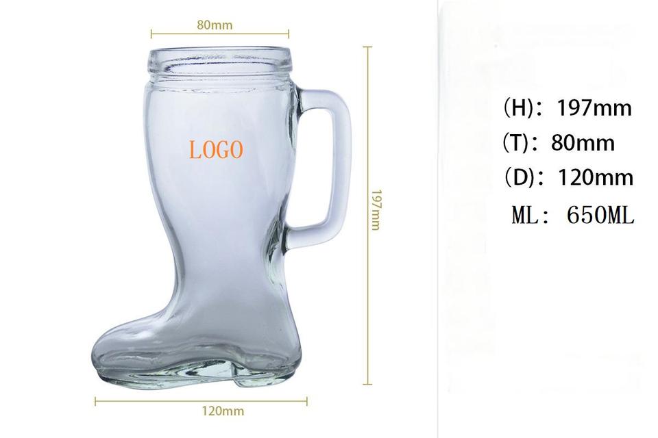 650ml Logo personnalisé verre fête tireur grande capacité botte verre à bière avec poignée pour Bar Cocktail