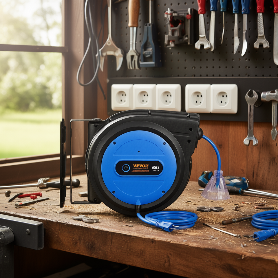 Enrouleur de câble rétractable de 65 pieds, 12AWG 3C SJTOW, pour usage domestique