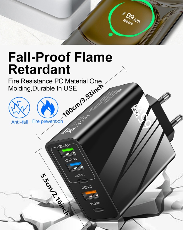 Prise murale rapide 65W avec prise UK EU US QC3.0 PD 20W Type c chargeur mural pour iPhone 11 12 13 14