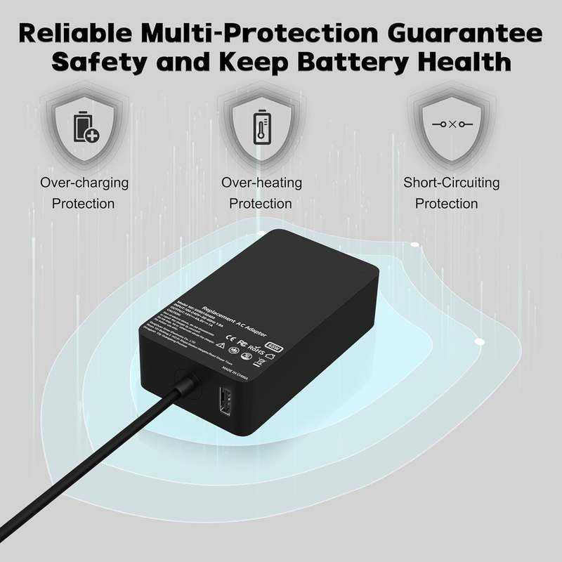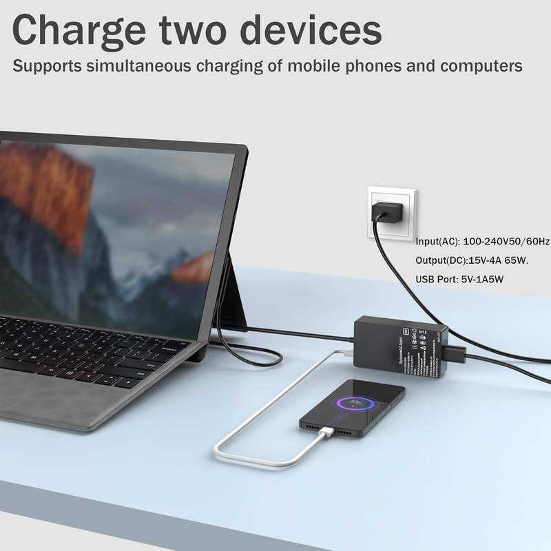 Chargeur rapide PD 65W pour Microsoft Surface Book 2 et Surface Pro 7/6/5/4/3, adaptateur 15V 4A avec protection OVP OCP OTP
