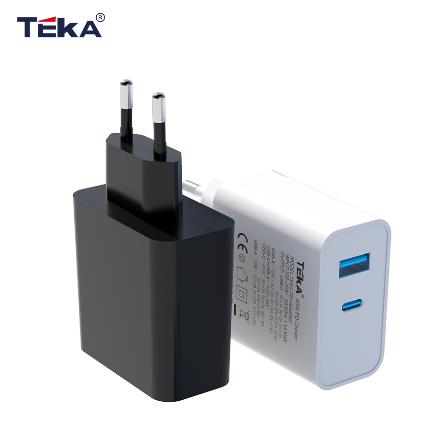 Chargeur rapide double protocole PD QC 65W, prise EU, type C, 5V3A 9V3A 12V3A 15V3A 20V3.25A, certifié pour ordinateur portable et téléphone