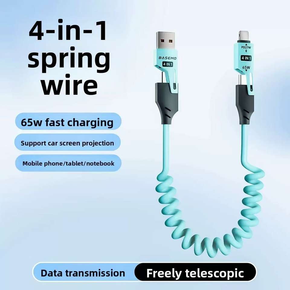 Câble de charge super rapide USB Type C 4 en 1 65W PD27W 3A Charge rapide 1,5m Cuivre pur USB3. Coque de protection en PVC pour ordinateur Huawei, modèle Car 1