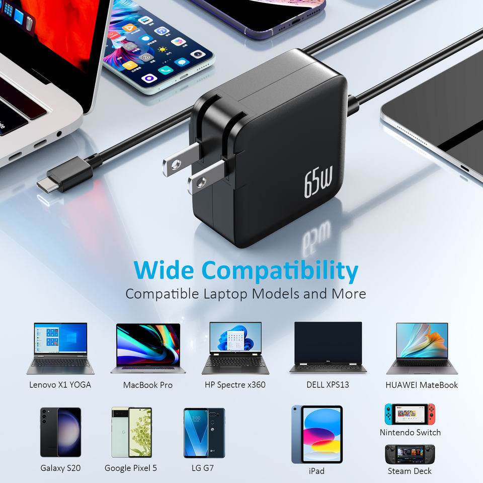 Chargeur rapide USB-C carré 65W avec PD 3.0 et protection OTP pour ordinateurs portables MacBook ASUS