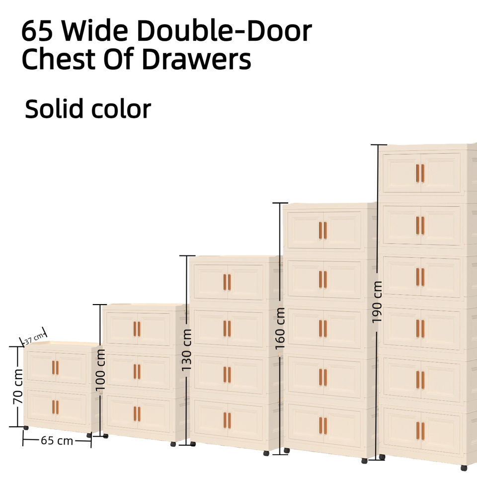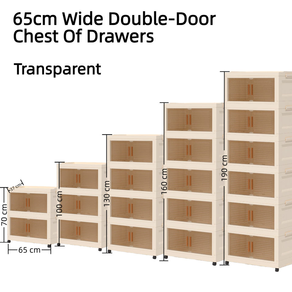 Organisateur de Rangement Pliable à Double Porte et Tiroirs Multi-Niveaux en Plastique de Grande Capacité, Largeur 65 cm, pour Chambre, Salon et Cuisine