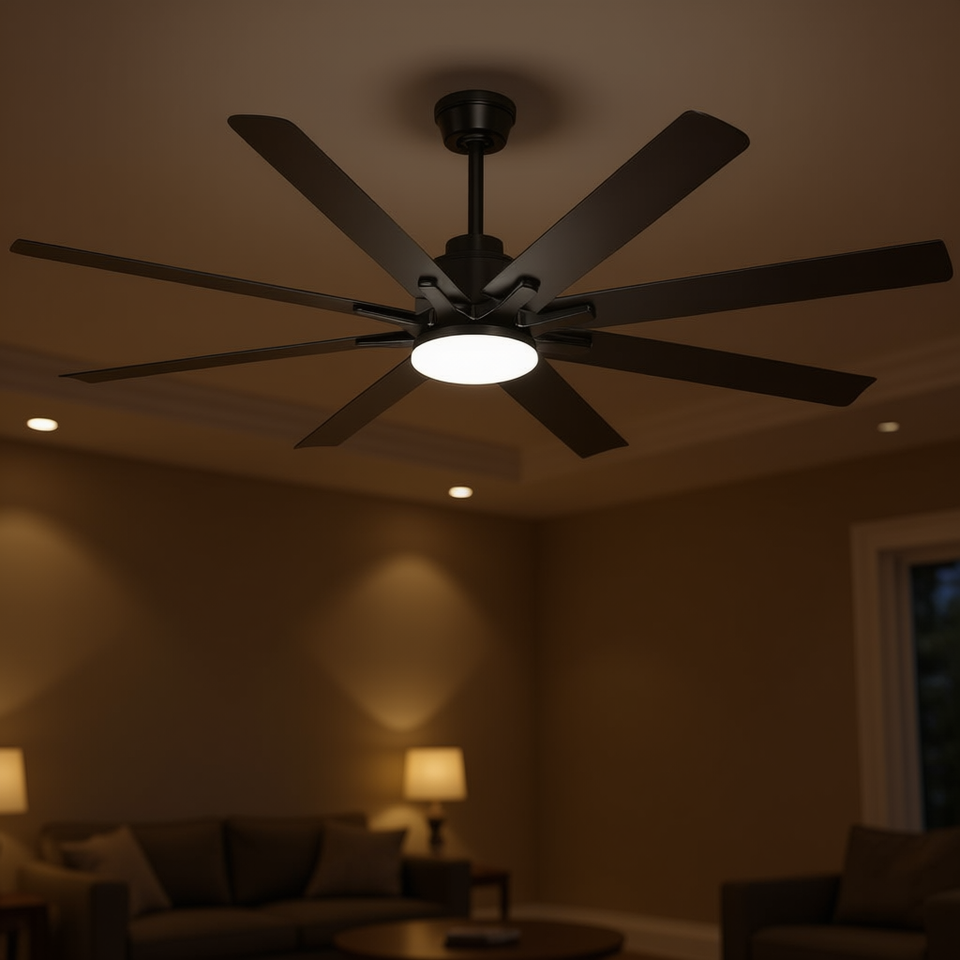 Ventilateur de plafond LED moderne 66 pouces, 8 pales, moteur DC, lumière à intensité variable, télécommande, noir, éclairage intérieur pour la maison et le bureau