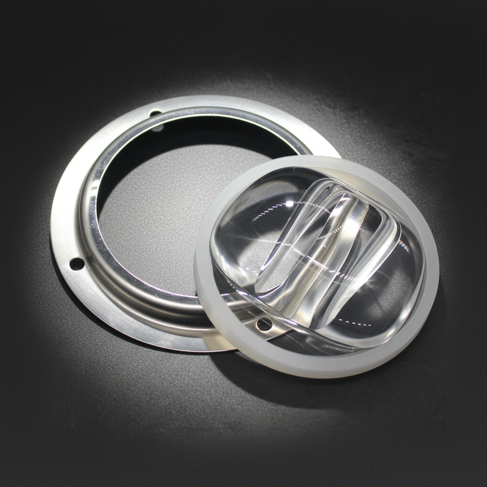 Lentille asphérique PMMA de remplacement pour lampadaire LED haute puissance 66 mm, angle de faisceau 140x70 degrés