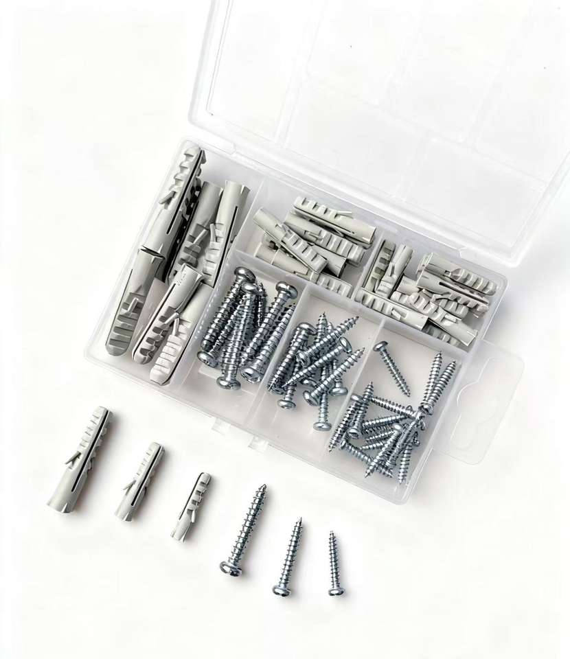 66 pièces Kit d'ancres et goujons de fixation pour cloisons sèches, plaques murales creuses et carreaux, avec goujons en nylon et vis à percussion