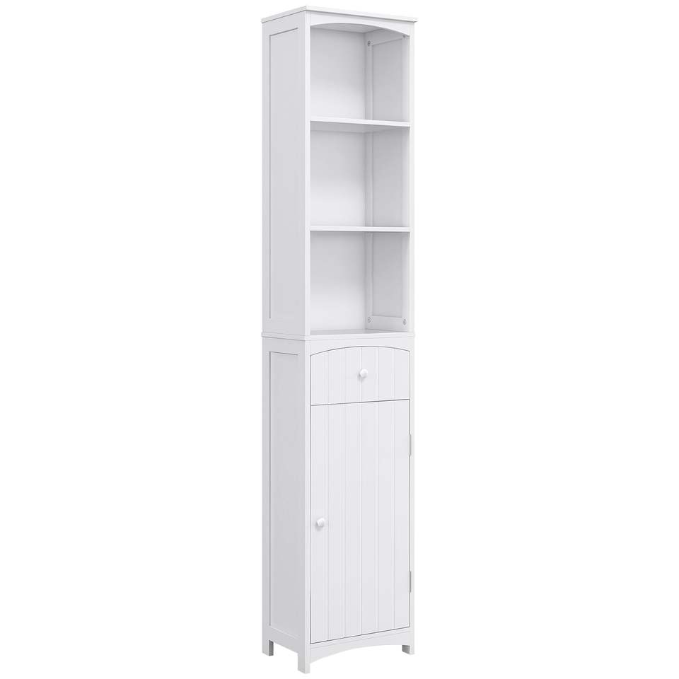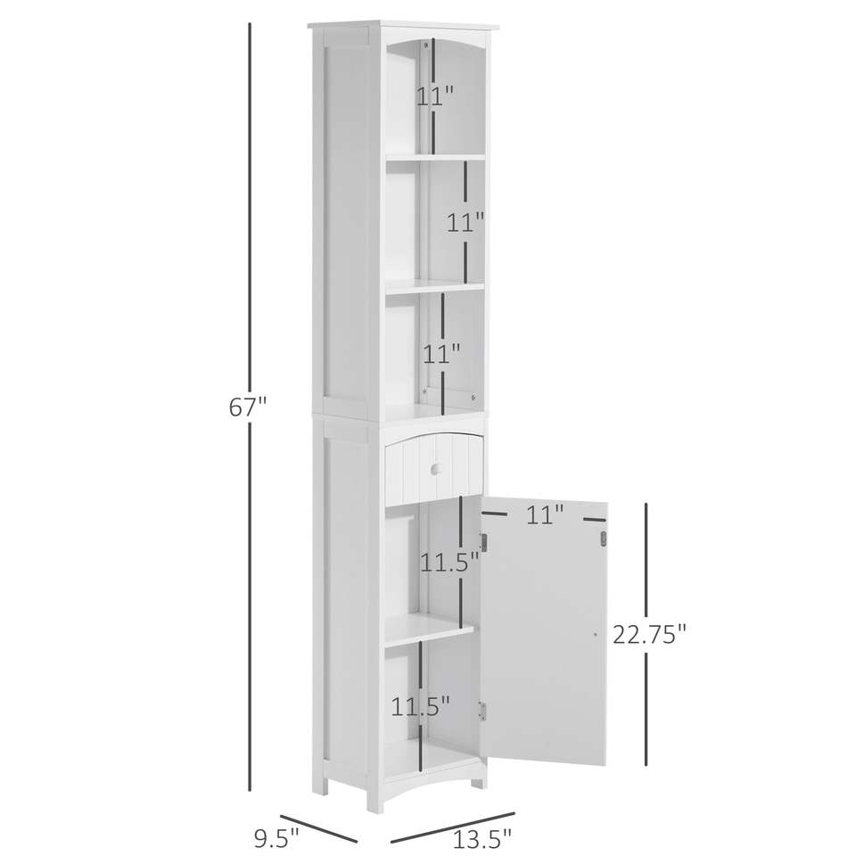 Meuble de rangement autoportant pour salle de bain de 67 pouces, tour à linge haute à 3 niveaux avec tiroir blanc, étagères de salle de bain