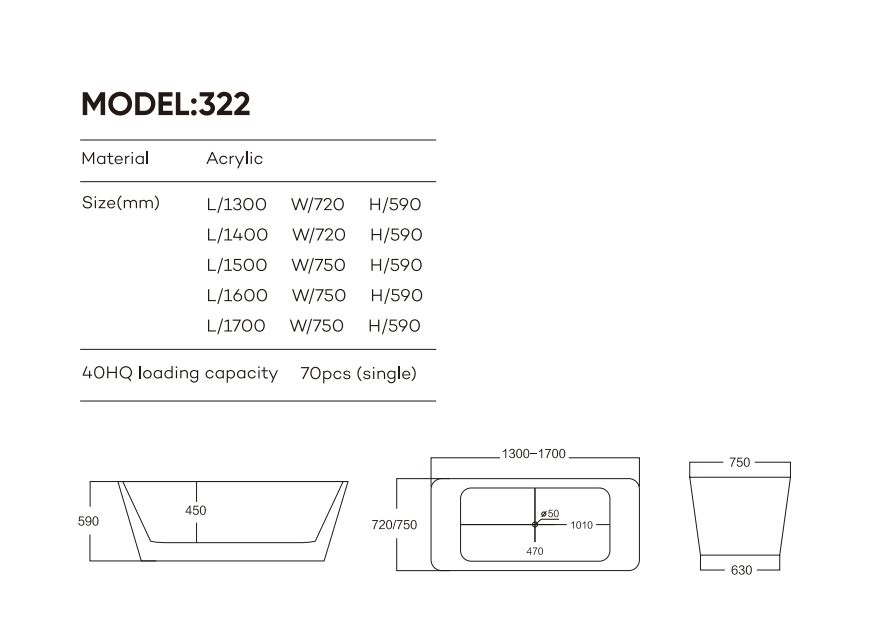 Grande baignoire acrylique classique de 67 pouces baignoire autoportante baignoire de trempage