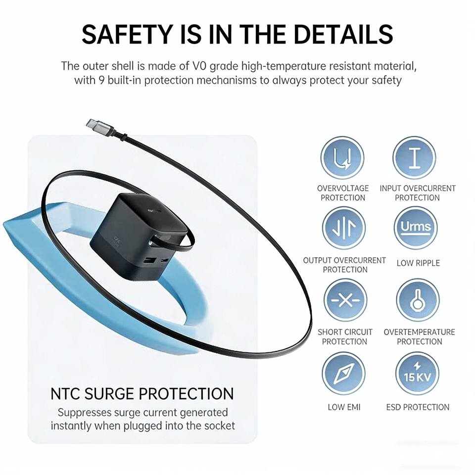 Mots-clés:Chargeur rapide 67W, chargeur USB-C multi-ports, chargeur à câble rétractable