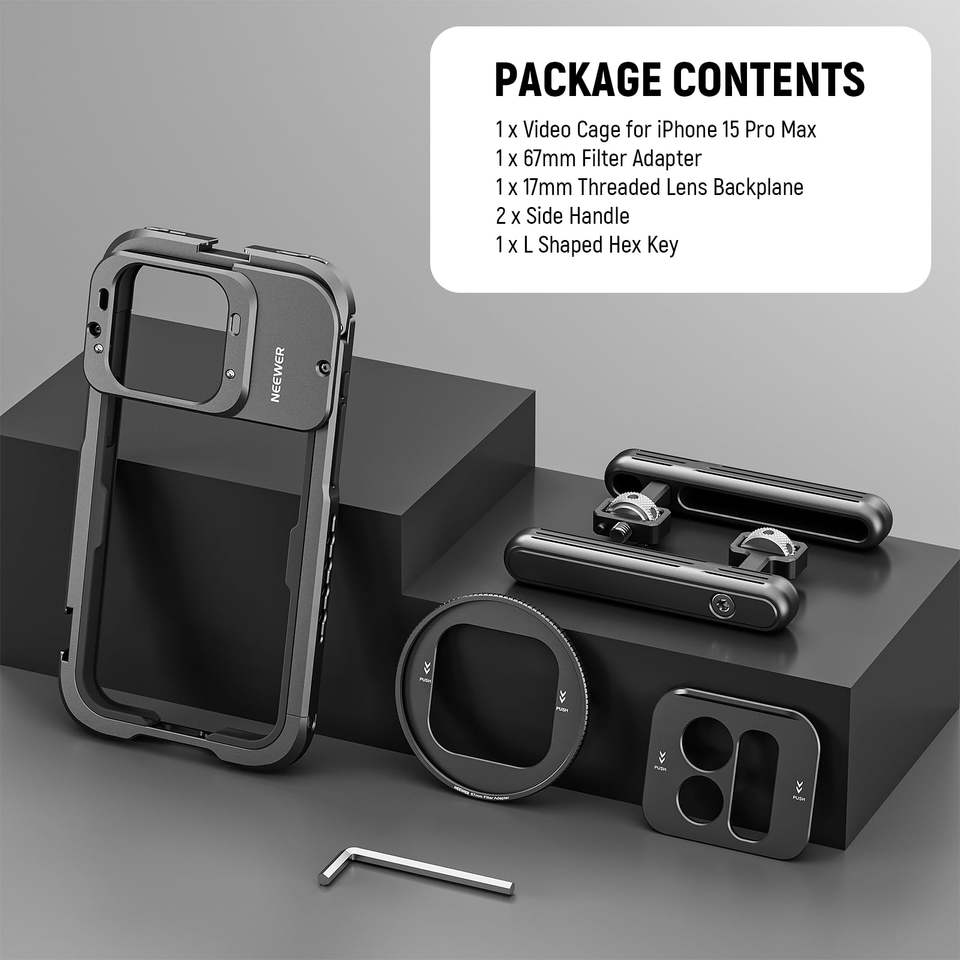 Adaptateur de filtre 67 mm pour cage de téléphone portable, rig vidéo avec plaque arrière pour objectif 17 mm, cage vidéo Neewer 15 Pro pour téléphone avec doubles poignées