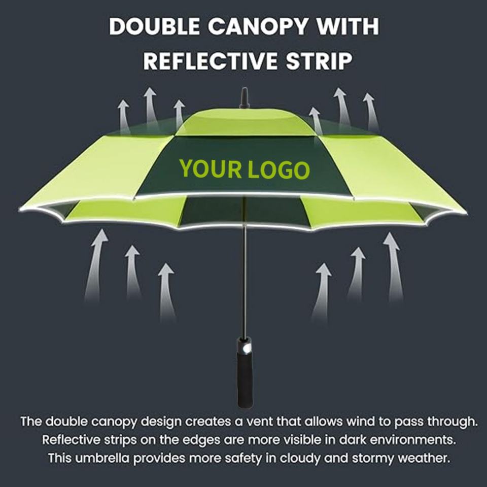 Parapluie de golf grand format 68 pouces, double couche, OEM ODM avec logo, cadeau d'affaires, parapluie de golf coupe-vent de bonne qualité, vente en gros