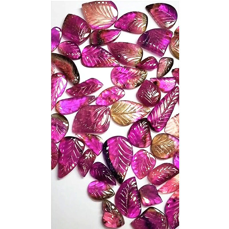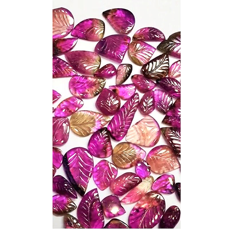 Product name:Natural Multi tourmaline 14mm to 25mm free size gemstone carving leaf