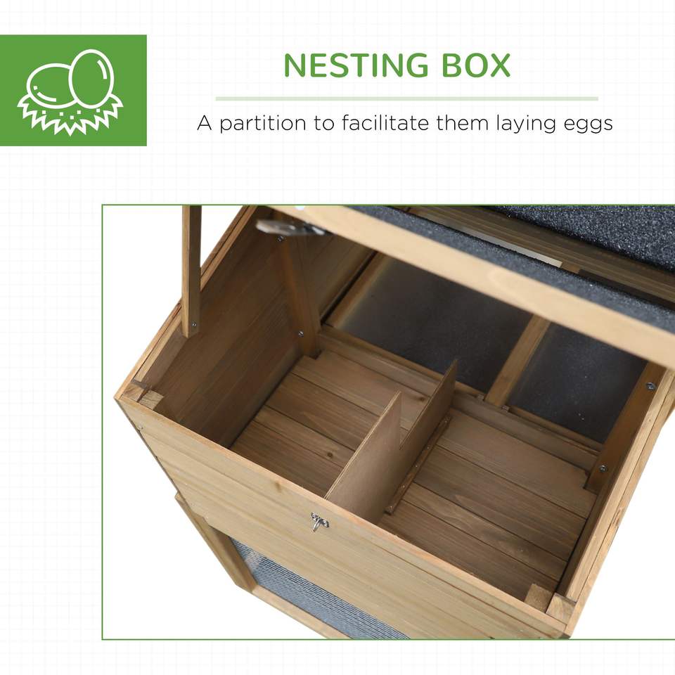 Poulailler en bois de 69 pouces avec nichoir, fenêtre ventilée, plateau amovible, cage à volailles, maison pour poules, rampe de connexion, naturel