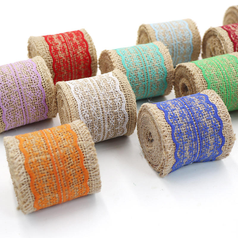Ruban en jute de 6 cm de large, 2 m/rouleau, pour nœuds papillon de mariage, emballage de fleurs DIY, vente en gros d'usine