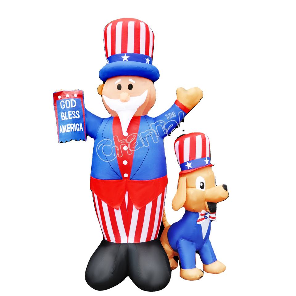 Oncle Sam gonflable de 6 pieds avec chien et lumières LED Independence Day Yard Decor pour la fête en plein air du 4 juillet