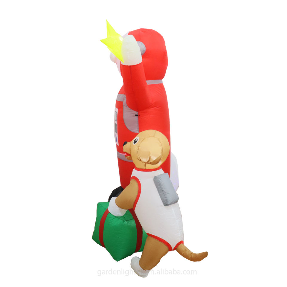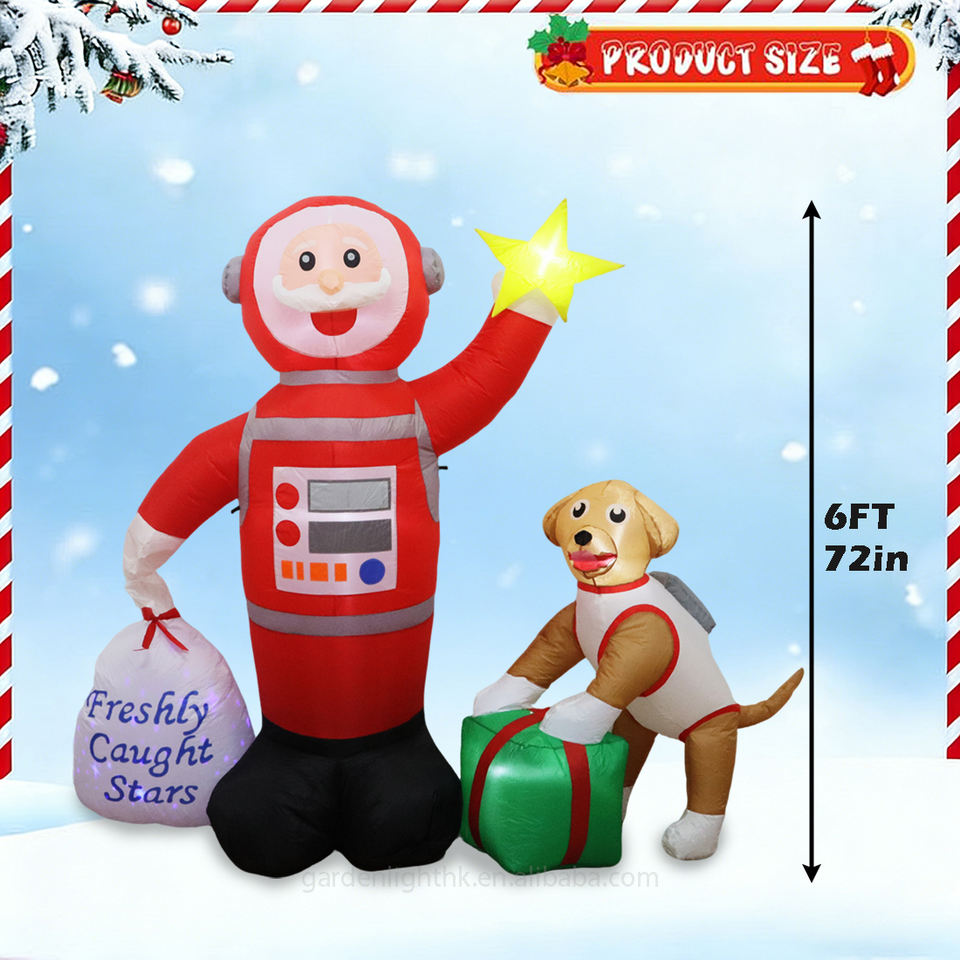 Nom du produit:Père Noël gonflable de 1,80 m attrapant des étoiles avec sac cadeau et chien