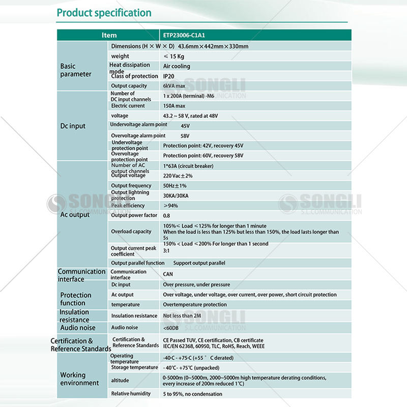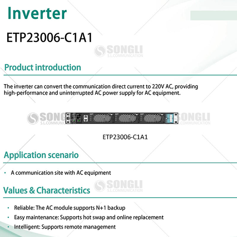Onduleur de système d'alimentation télécom Subrack 6KVA ETP23006-C1A1 onduleur solaire hybride avec 50A sortie unique 48V onduleur
