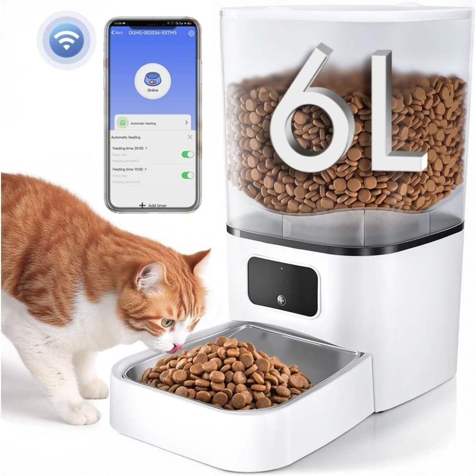 Distributeur de nourriture intelligent pour animaux de compagnie 6L avec caméra, vision nocturne grand angle, machine d'alimentation programmée pour chiens, portable