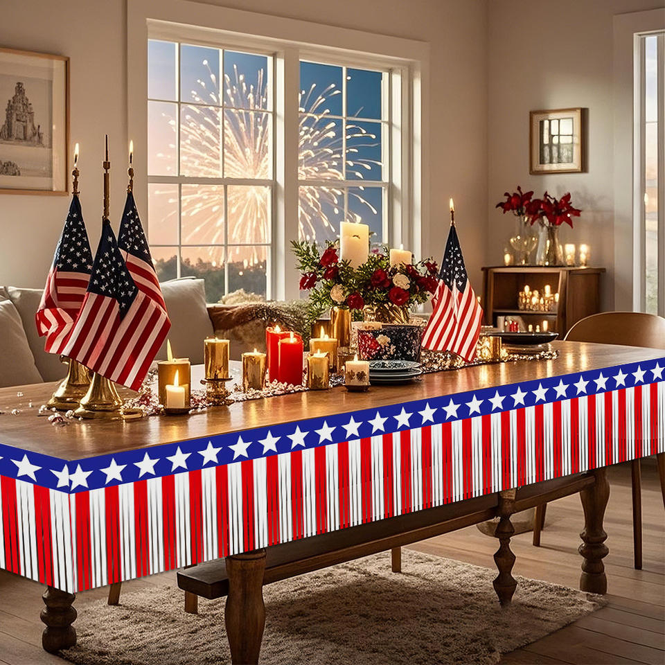 Bannière de rideau en soie de pluie rouge blanc bleu 6M pour le jour de l'indépendance américaine et le festival décorations de cour à la maison conception de gland floral