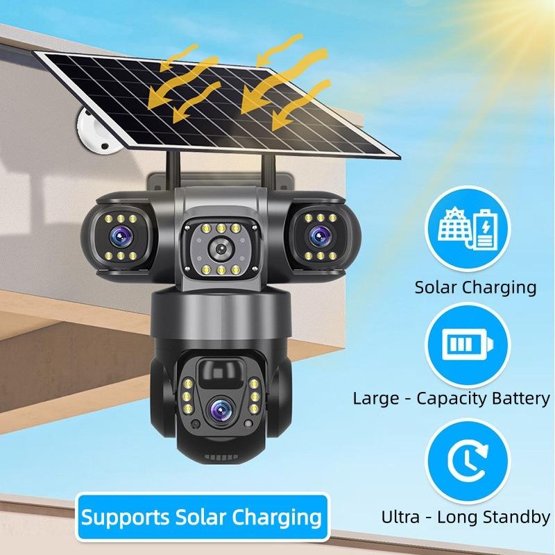 Caméra de sécurité solaire 4G avec capteur CMOS 6MP V380pro, 3 objectifs, 3 écrans, panneau solaire 8W, batterie 8000mAh, détection de mouvement, sécurité domestique
