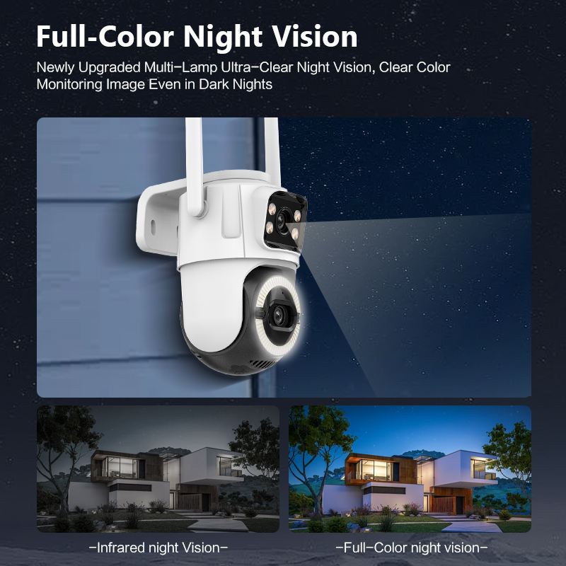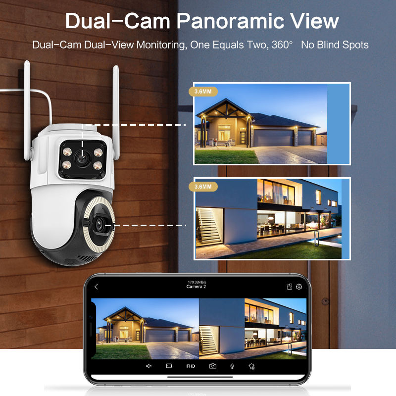 Caméra de sécurité WiFi extérieure à double objectif 6MP ICsee avec vision nocturne, capteur CMOS, étanche IP66, prise en charge de 128 Go, caméra WiFi H.265