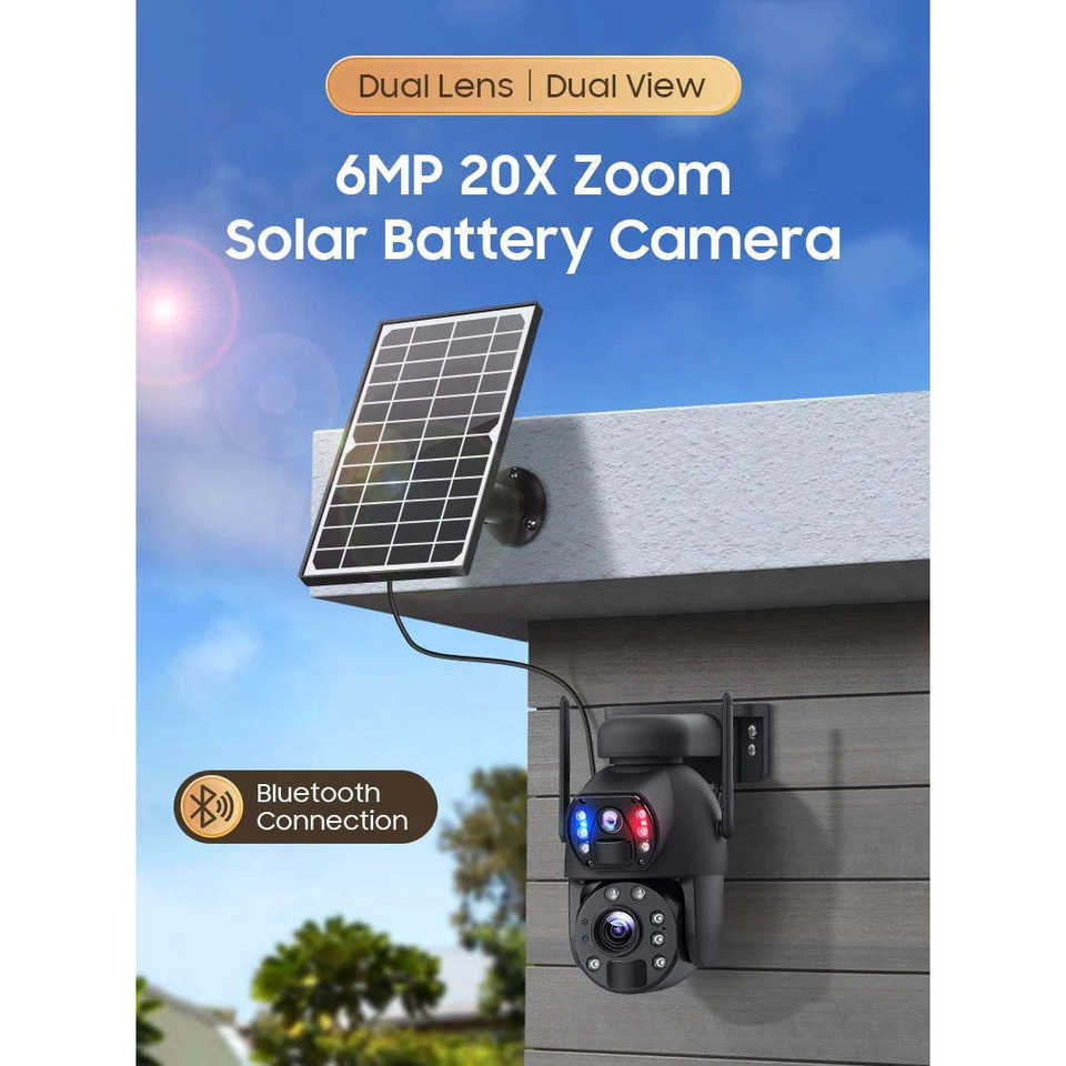 Système de sécurité CCTV solaire 6MP avec zoom optique 20x 4G Wifi sans fil double objectif faible puissance PIR détection de mouvement caméra CCTV IP