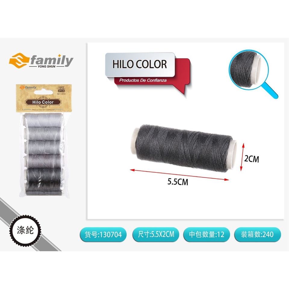 Fil de couleur gris dégradé 6 pièces pour la couture et l'artisanat