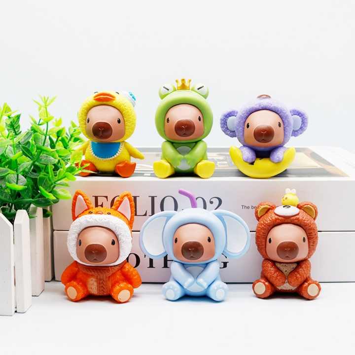6 pièces/ensemble Figurine Capybara Cos Animal Canard Grenouille PVC Anime Figure pour boîte à œufs Catcher Gashapon Machine de jeu Jouets de récompense
