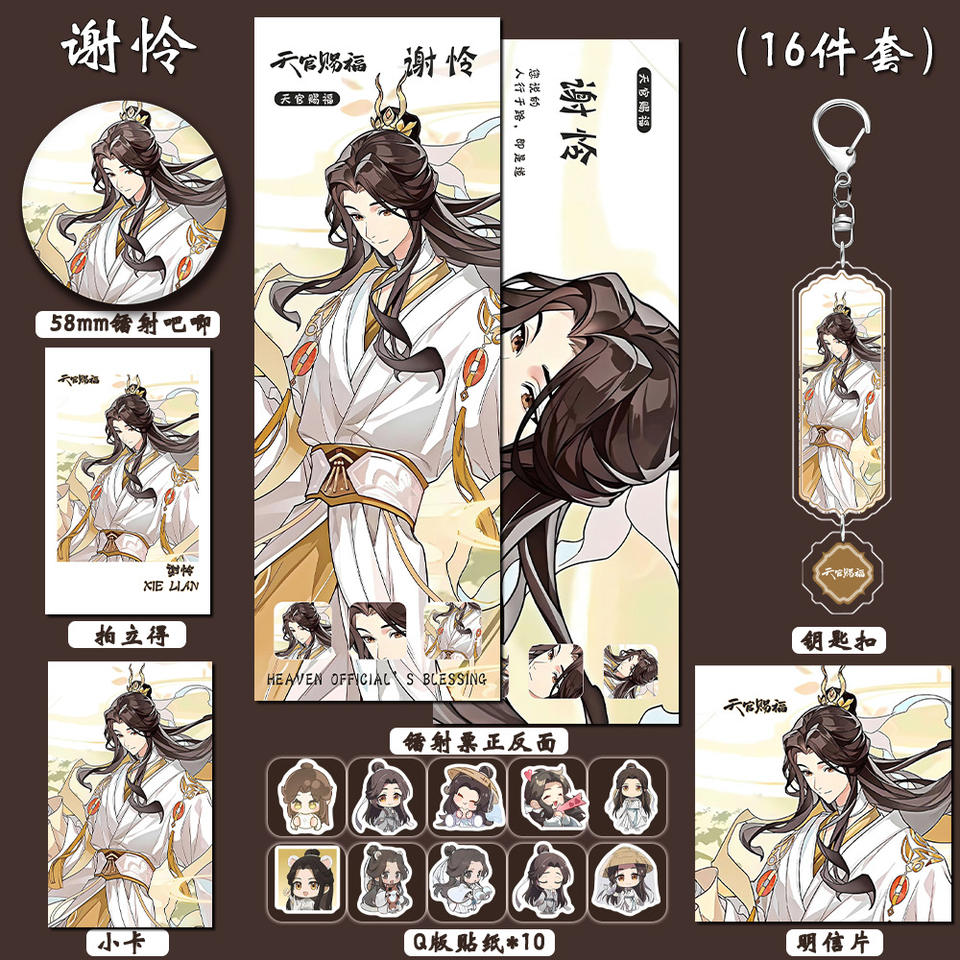 6 pièces/ensemble Tian Guan Ci Fu Xie Lian Lomo carte broche porte-clés cadeau ensemble en gros Anime jouant des cartes Photo signet papier artisanat