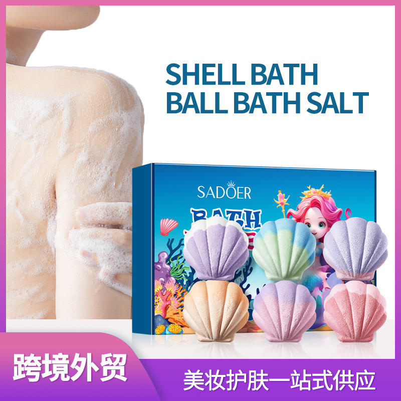 6 pièces/boîtes boule de bain en forme de coquille faite à la main naturelle sel de bain moussant personnalisé pour le corps sel de bain minéral avec des cristaux