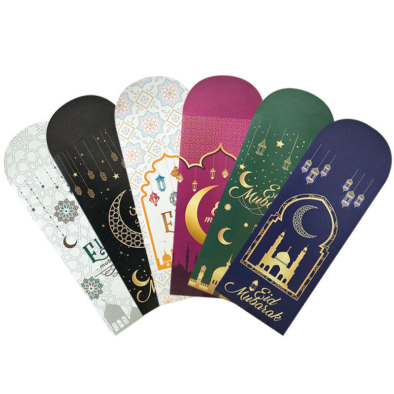 6Pcs Eid Mubarak Enveloppes Cadeau Sac Argent Lune Château Ramadan Décoration Musulman Islamique Poche pour Eid Al-Fitr Décor Fournitures