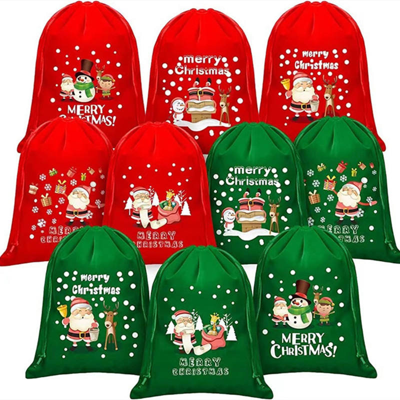 6Pcs/Lot Christmas Gift Bag 51*41cm*3Pcs+ 41*32cm*3Pcs Snowflake Stocking Cotton&Linen Green Tree Drawstring Bag Printed Socks